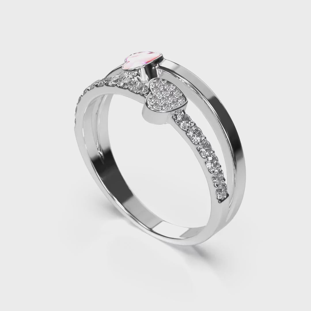 Introducing the Aura-Star Royal ring, a stunning double heart ring crafted from high-quality sterling silver. One heart is encrusted with sparkling cubic zirconia diamonds while the other holds a special meaning as it's infused with the ashes of your loved one, creating a beautiful piece of memorial jewellery.